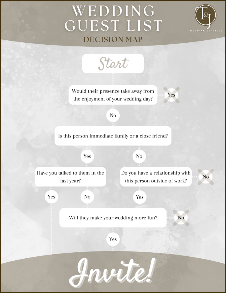 Resource: Here is a free downloadable Wedding Guest List Decision Map to help with some of those hard decisions.